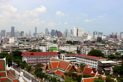 Vista de Bangkok desde la terraza del Golden Mountain.