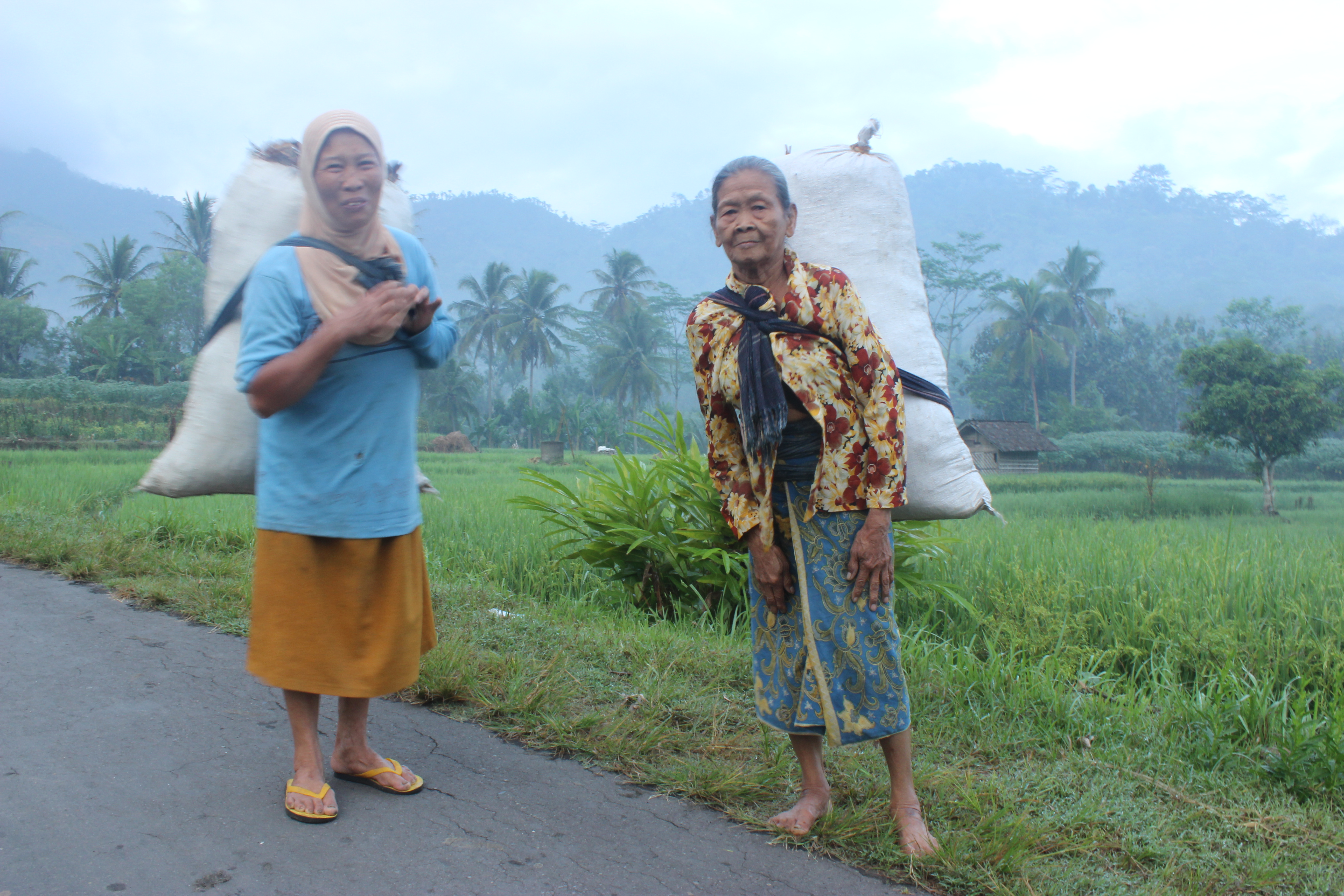 Campesinas portando fardos de hojas de tabaco, en Yogyakarta (Indonesia).