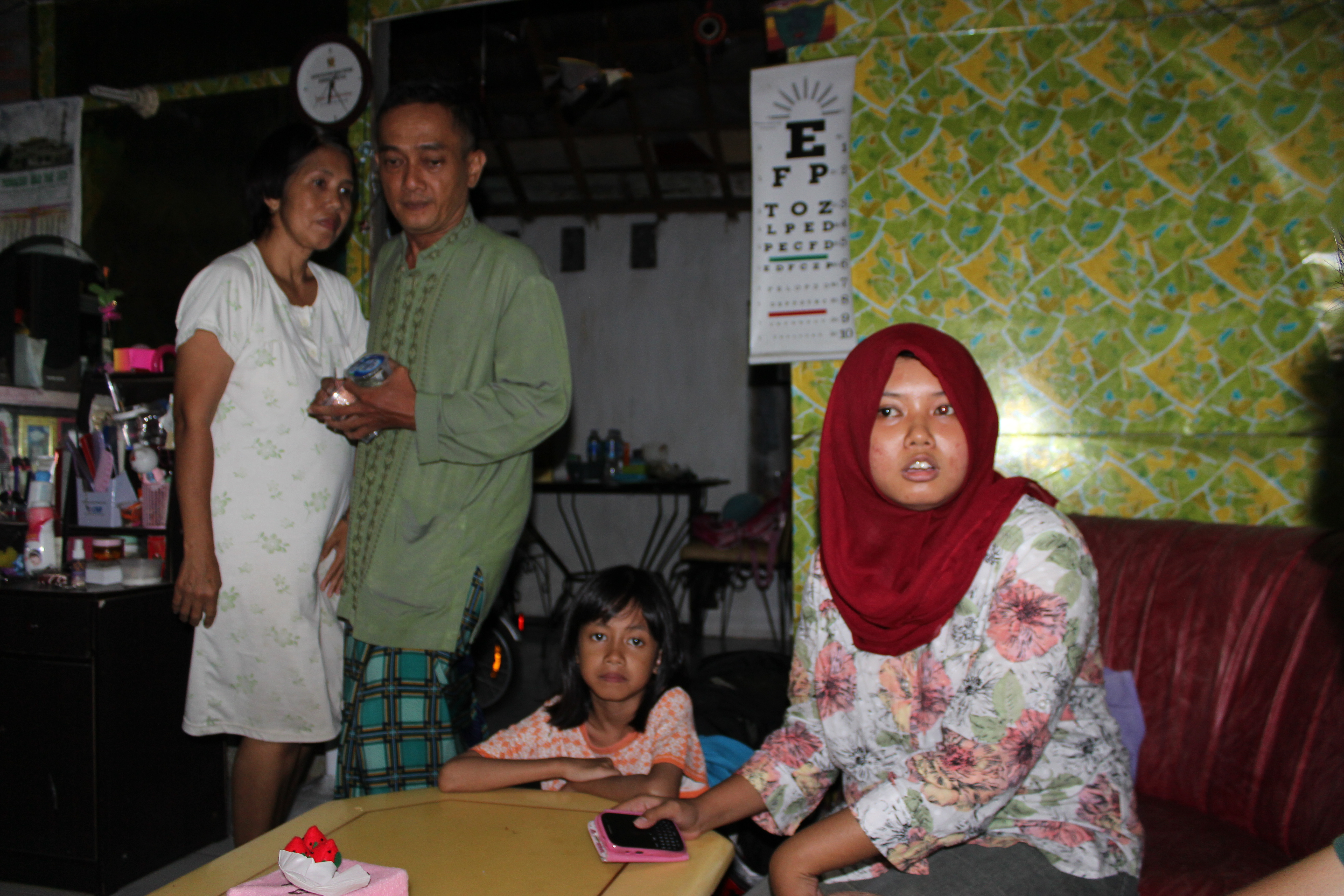 Una gran lona repleta de letras escritas ,en bahasa indonesia a modo de cartel de entrada daba la bienvenida al hogar. La puerta abierta, como es costumbre. A un lado, un pequeño mostrador y unas vitrinas que contenían varias gafas. El cabeza de familia era el óptico del barrio. En el otro lado, un pequeño sofá en donde nos invitaban a descalzarnos para entrar en el domicilio. Una pequeña sala anexa hacía las veces de comedor, sala de estar y diminuta cocina. Esta última daba la sensación de estar en  desuso. Luego nuestra anfitriona nos confesó que en Indonesia no es habitual cocinar en casa. La comida en los puestos callejeros es tan barata que sale mucho más a cuenta comprarla que hacerla.