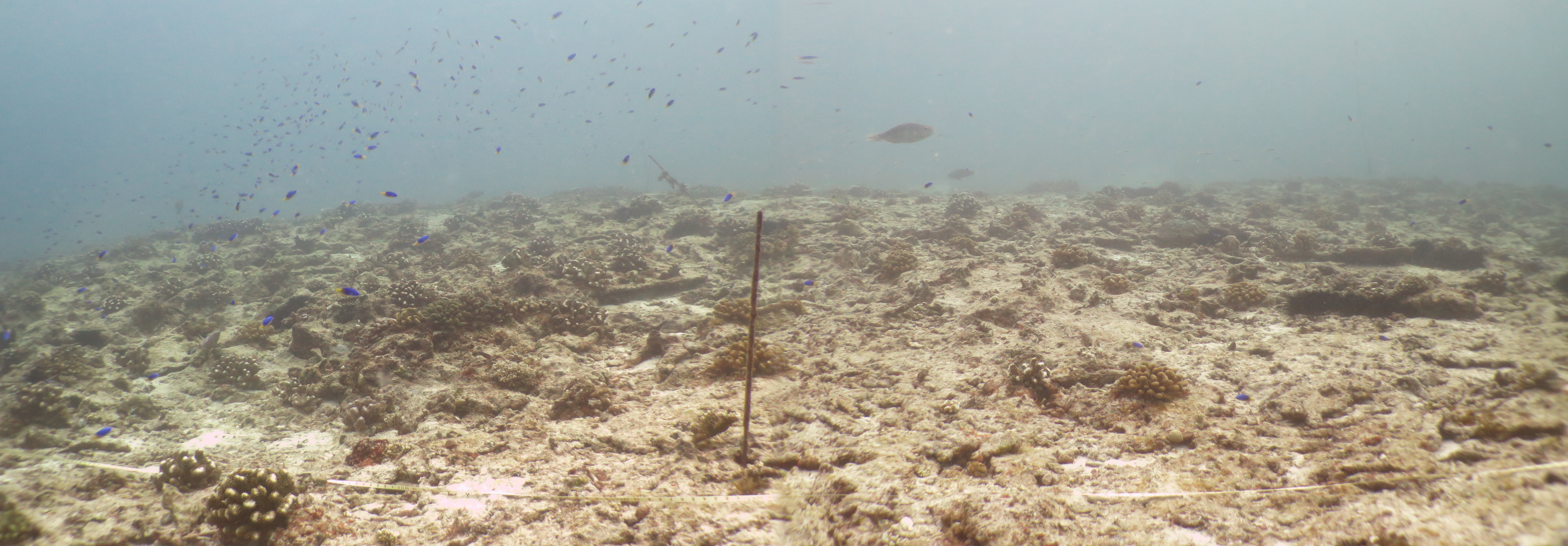 ARRECIFE DE CORAL DEGRADADO. El 97% de los corales murieron tras el paso de EL Niño y el tsunami de 2004 en las Seychelles. Copyright: Claude Reveret