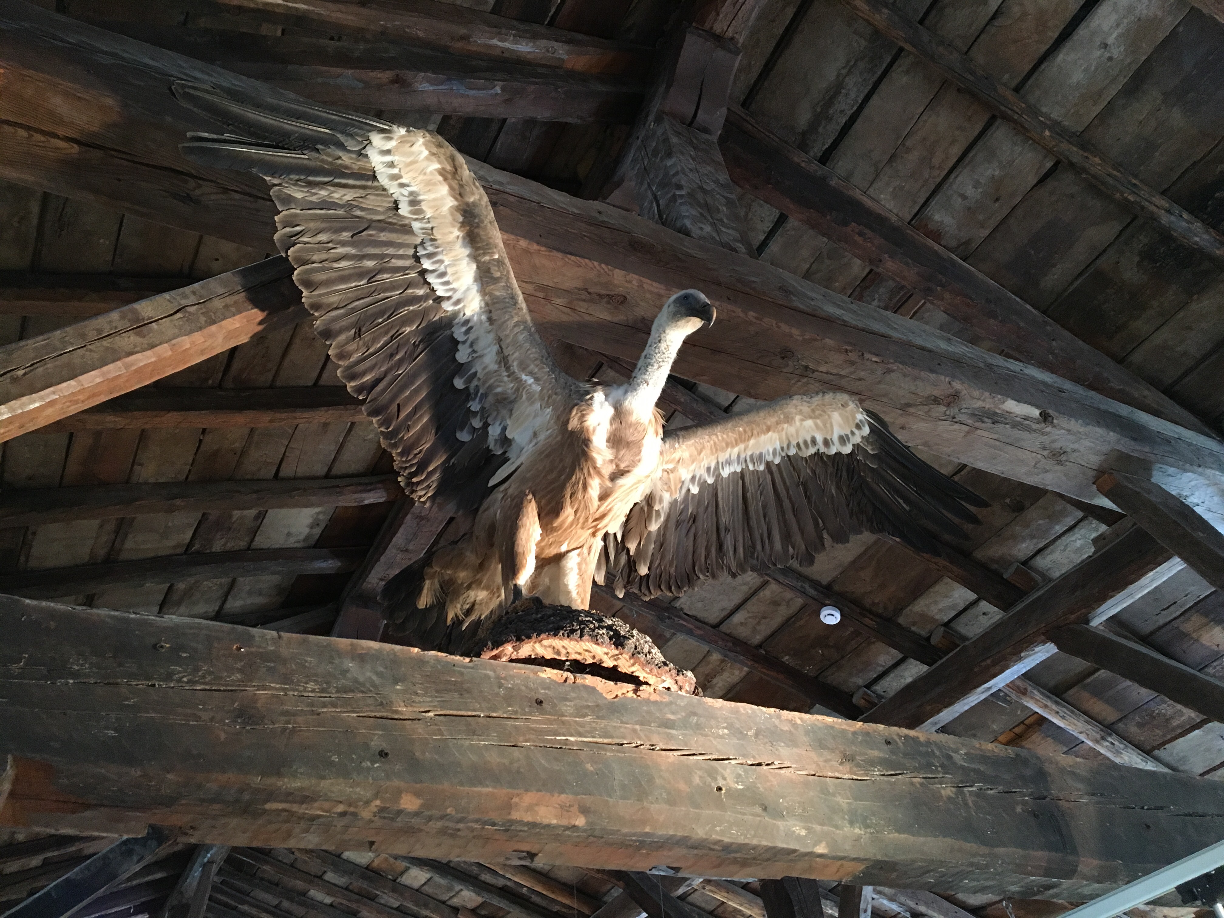 En la parte más baja, el agua del río Ucero corre dejando atrás los meandros mientras en la roca una sombra móvil advierte el vuelo alto de los buitres leonados. El buitre es el rey de este paraje. Con las alas extendidas abarca los dos metros de largo. Sobrevuelan aquí y allá estos animales carroñeros dibujando repetidos círculos oteando sus vastos dominios.