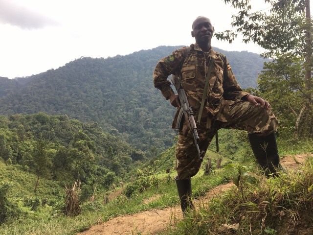 Ranger o guardabosques de la UWA (Autoridad Ugandesa de la Vida Salvaje), en el Bosque Impenetrable de Bwindi (Uganda).