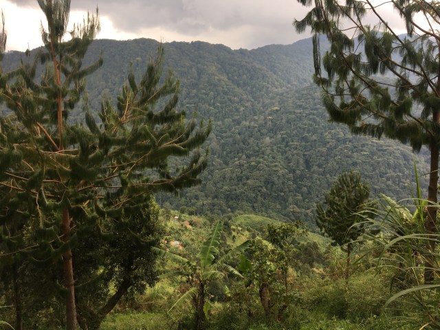Se tarda cerca de una hora en abandonar las laderas salpicadas de campos de cultivo de patata y té, aserraderos, casas particulares, o cualquier vestigio de civilización, antes de entrar en el bosque primario (virgen). Es entonces cuando hace acto de presencia la exuberancia de la selva o bosque húmedo, en todo su esplendor.