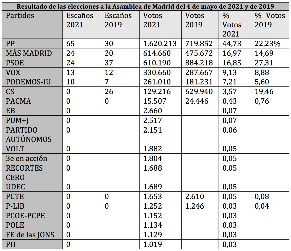 Tabla2: Elaboración propia a partir de los datos extraídos de: https://resultados2021.comunidad.madrid/Resultados/Comunidad-Madrid/0/es