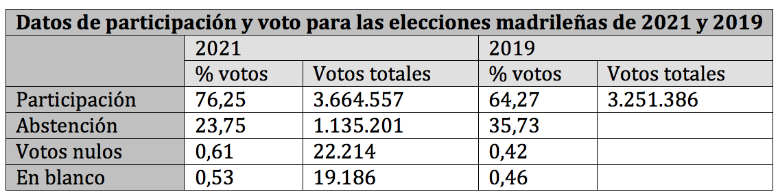 Tabla3: Elaboración propia a partir de los datos extraídos de: https://resultados2021.comunidad.madrid/Resultados/Comunidad-Madrid/0/es