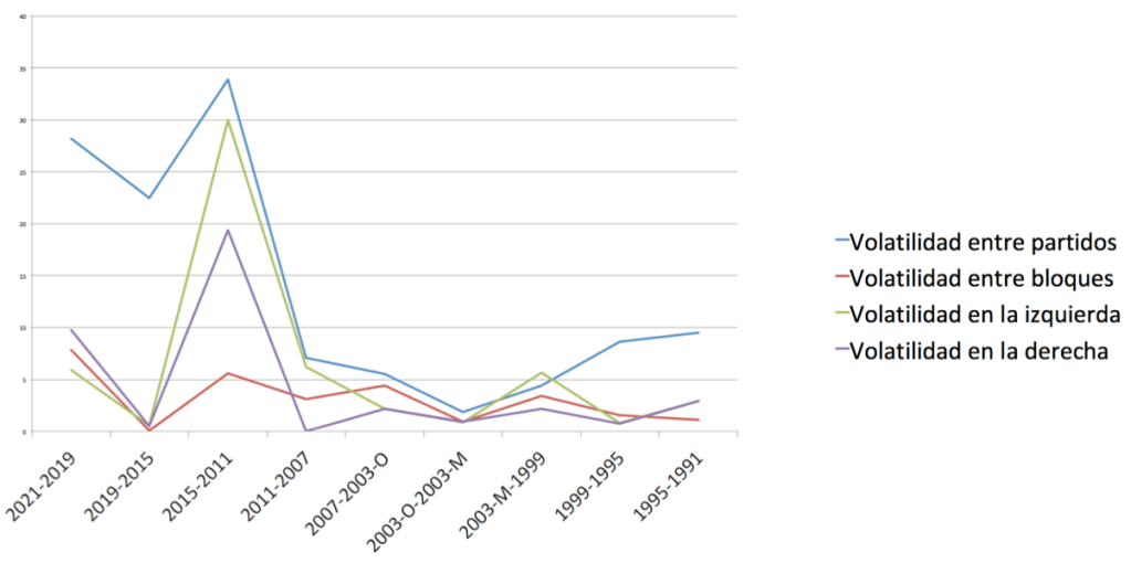 - La volatilidad electoral en el bloque de la derecha y en el de la izquierda: