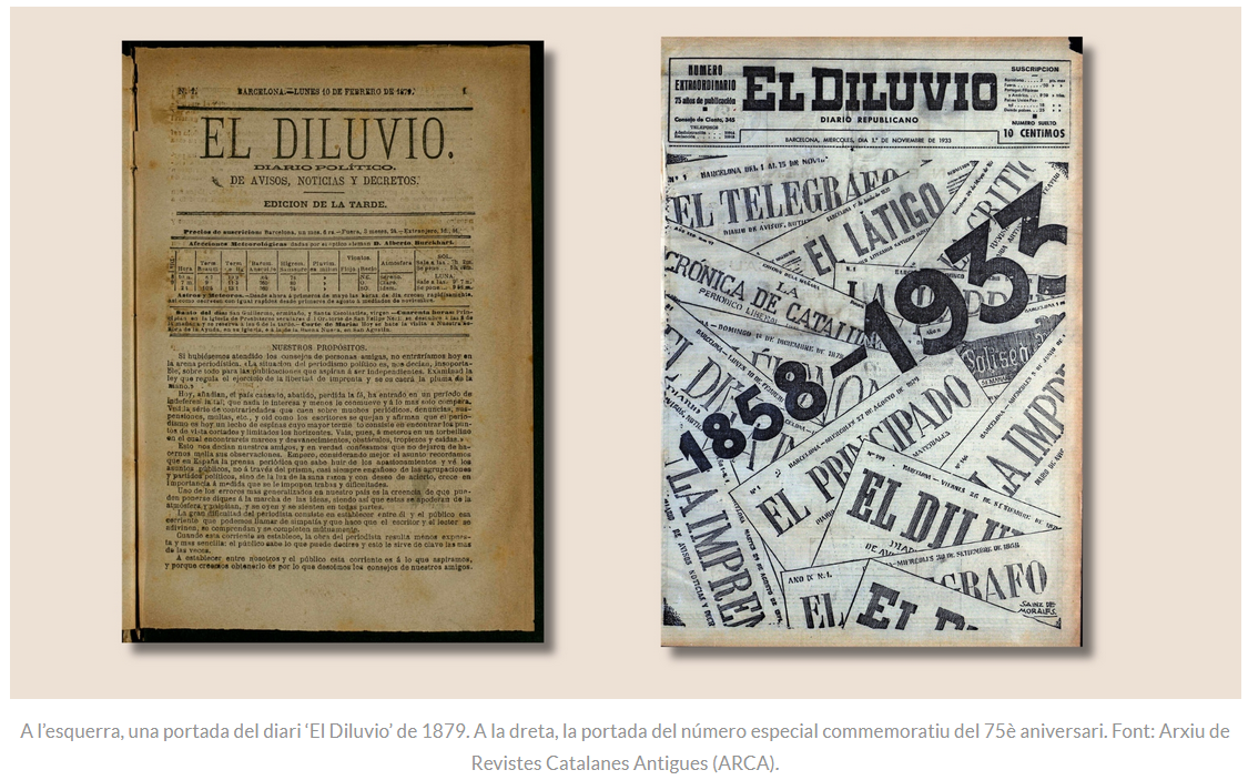 “Estem parlant d’una premsa primigènia, primitiva, que s’adreça a col·lectius petits. Encara no es pot parlar d’una premsa de masses. Ens hem d’imaginar la redacció de El Diluvio com un local amb una taula gran on els periodistes seien, uns al costat dels altres, per escriure els seus articles a unes quartilles, amb ploma i tinta. Els manuscrits després passaven a mans del linotipista i ell s’encarregava de compondre els textos a la impremta. De vegades s’hi escarrassava per desxifrar la lletra. Era tot molt artesanal”, explica Toll.